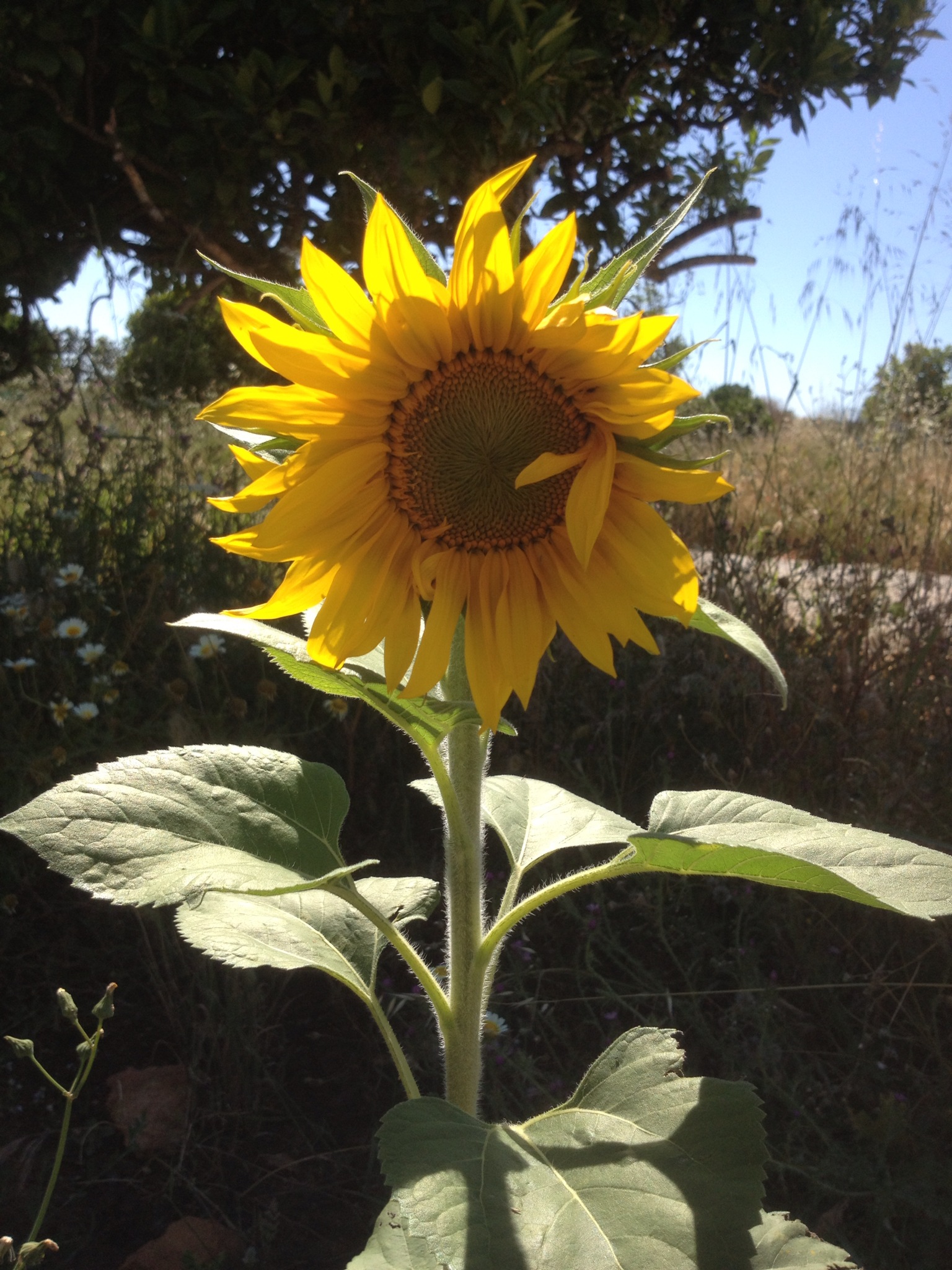 De gemengde bloemenzaadjes die begin april de grond in gingen zijn grotendeels tevoorschijn gekomen. Hier is ons zonnetje aan huis…