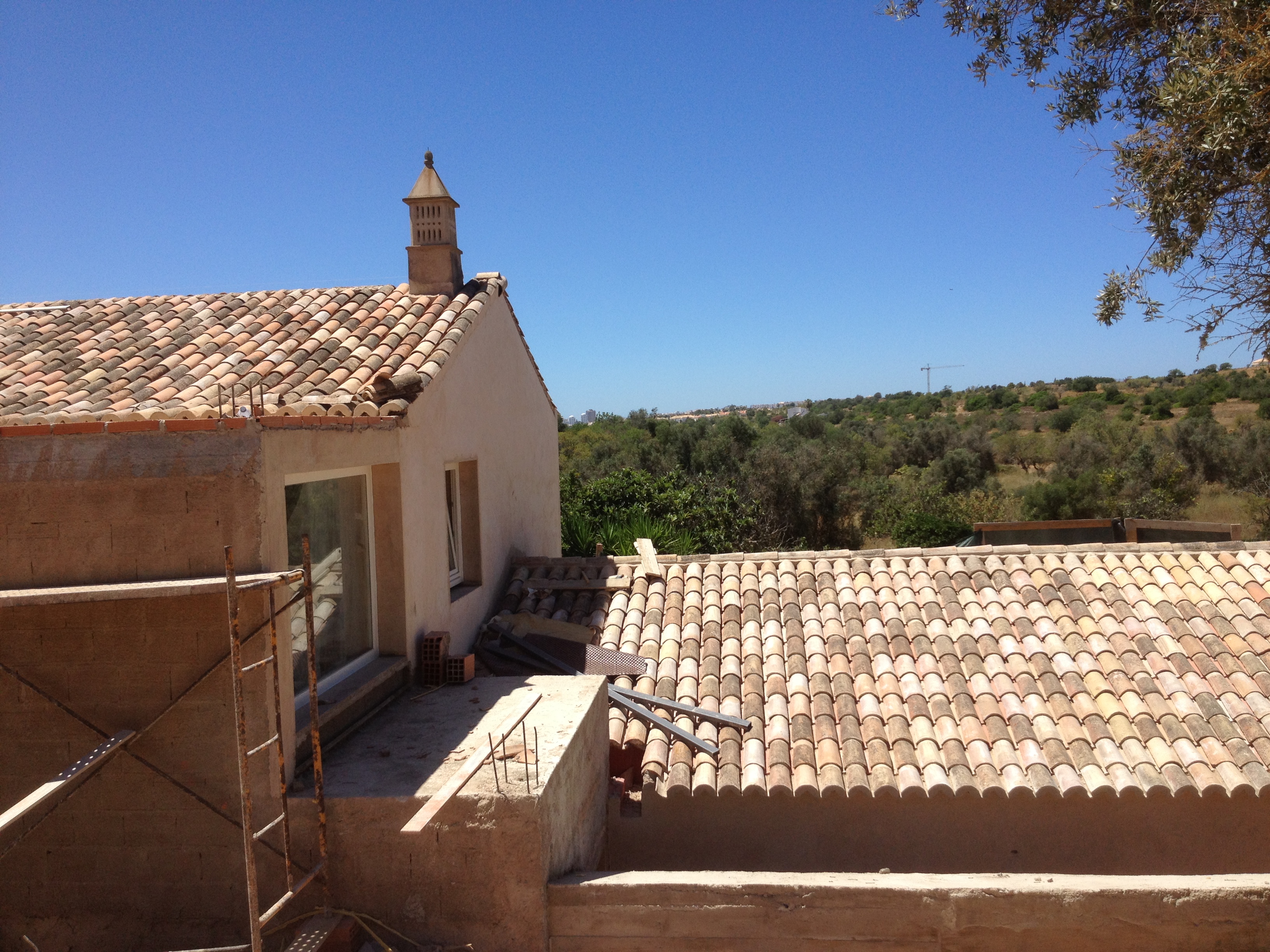 Het leggen van het nieuwe dak was een enorme klus die de zeer bekwame dakdekker goed heeft uitgevoerd. Twee lagen kurk als isolatiemateriaal en een vochtwerende onderlaag zijn aangebracht voordat de terra cotta pannen gelegd werden volgens traditionele wijze. Oude en nieuwe pannen zijn gemengd voor een natuurlijke uitstraling. Prachtig vinden wij!